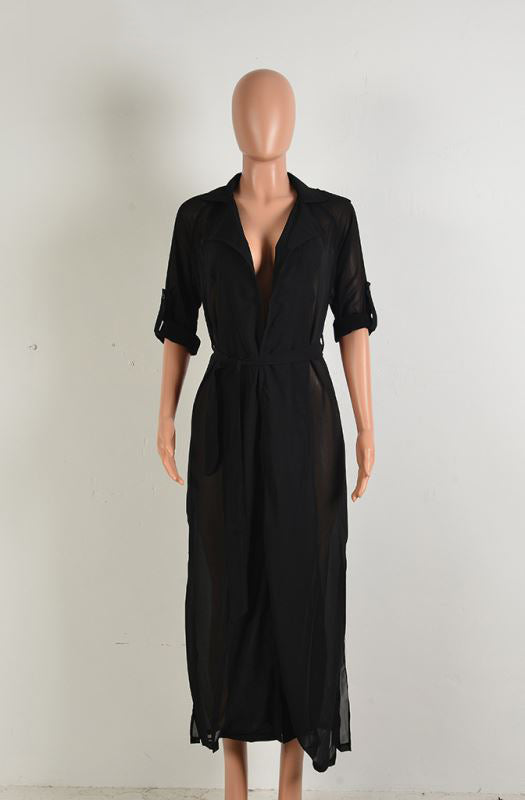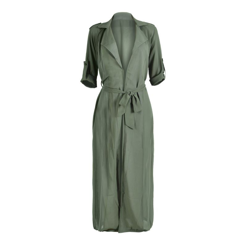 Full Sleeve Trench Coat Chiffon Duster For Women