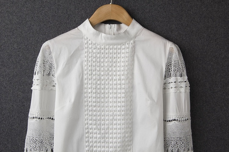 Material: CottonMaterial: RayonMaterial: AcetateClothing Length: RegularCollar: STANDDecoration: LaceSleeve Length(cm): FullStyle: CasualFabric Type: LaceFabric Type: Broadcloth