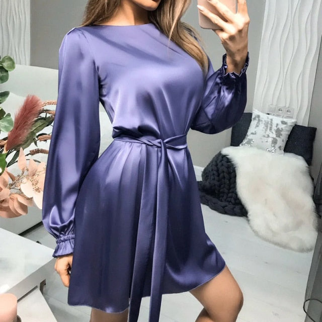 O-Neck Satin Mini Dress
