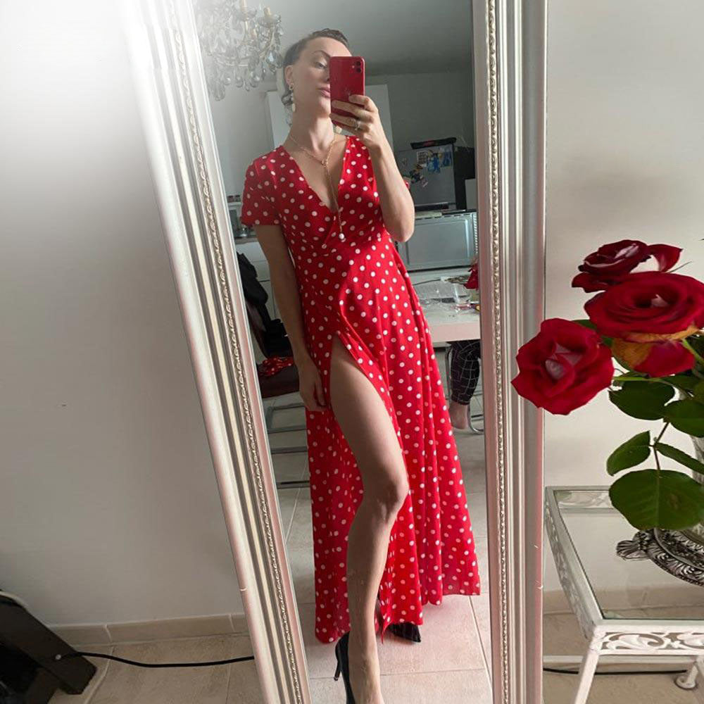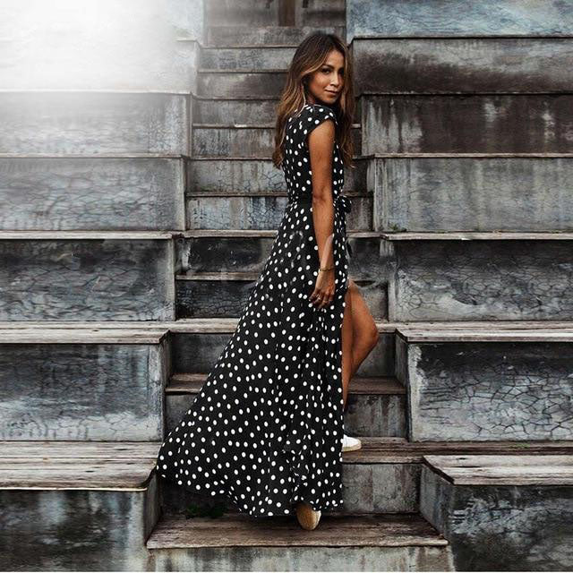 Short Sleeve Polka Dot Maxi Dress