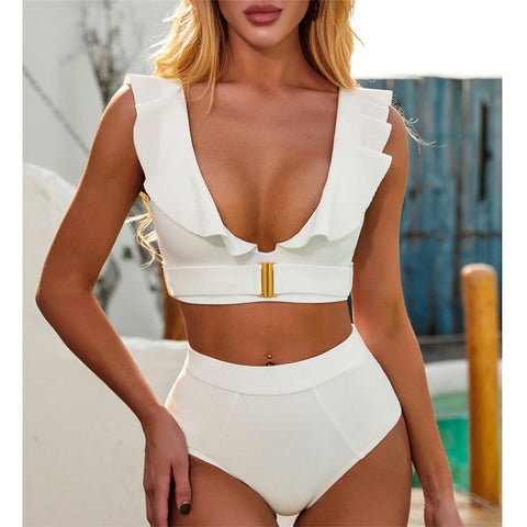 Beautiful Hollow Out High Waist Two Pieces Solid Bikini Waist: High WaistItem Type: Bikinis SetFit: Fits true to size, take your normal sizeMaterial: Polyester, Spandex Size Chart: