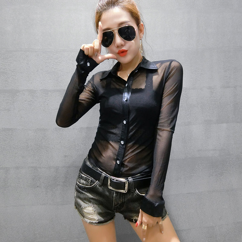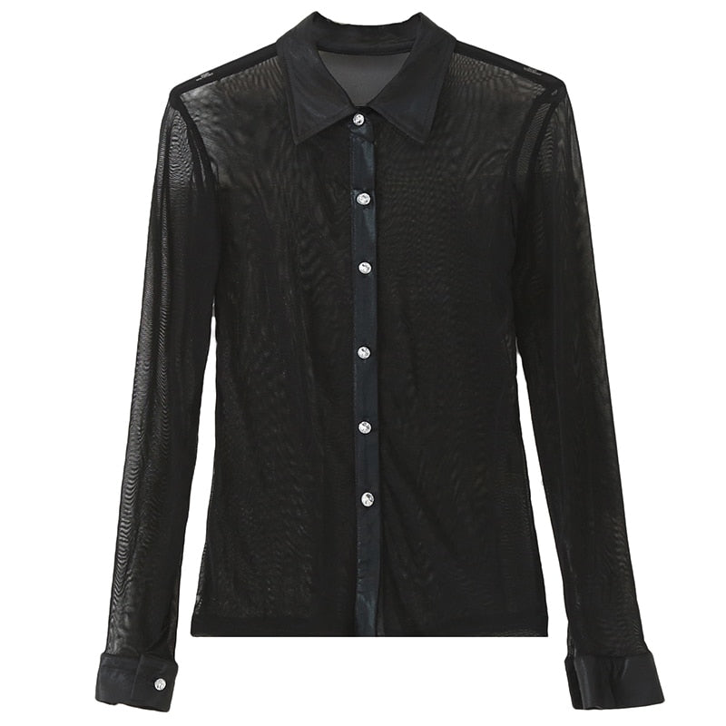 Cardigan Long Sleeve Slim Mesh Transparent Blouse