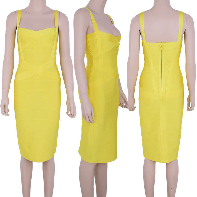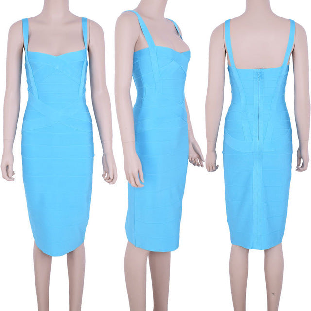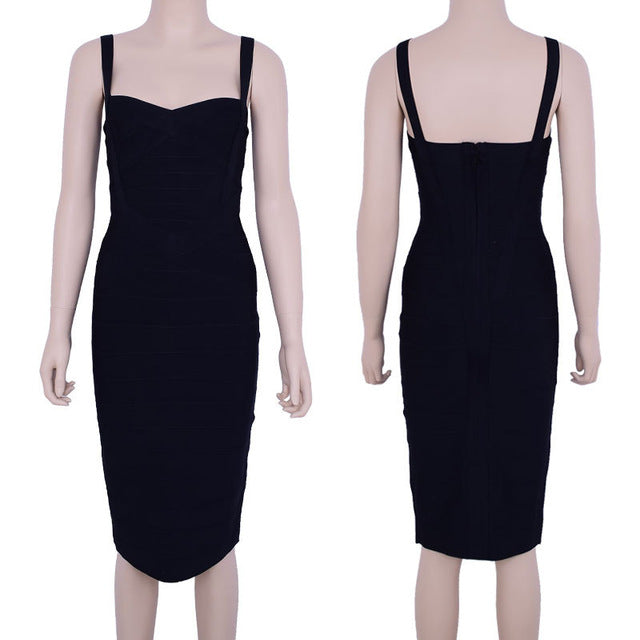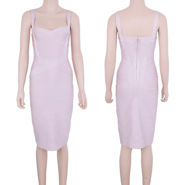 Knee Length Spaghetti Strap Bodycon Bandage Dress