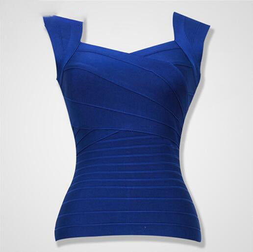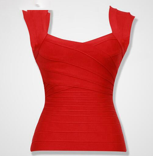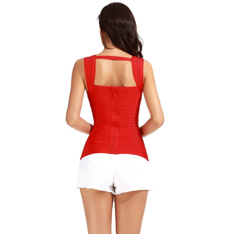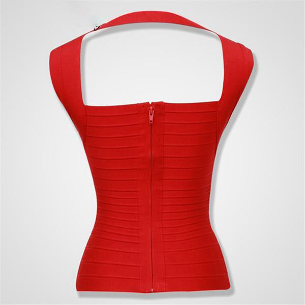 Red Elastic Halter Bandage Top Knitted Rayon Blouse