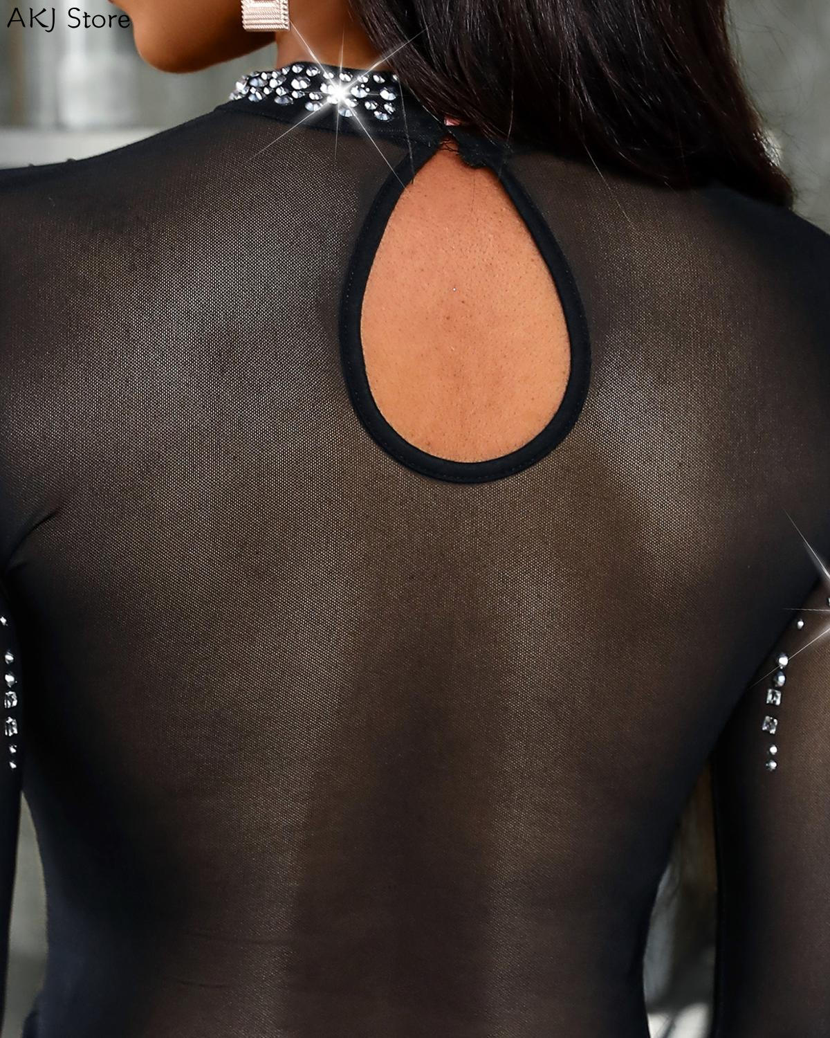 Sexy Skinny Black Shiny Studded Long Sleeve