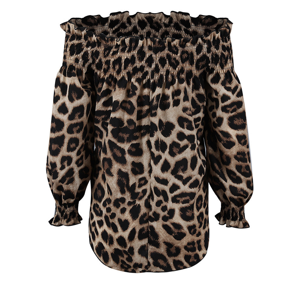 Leopard Blouse Shirts Off Shoulder Printing Loose Tops